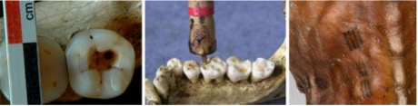 Le Néolithique a donc vu apparaître un nouveau mode de vie, une nouvelle alimentation basée sur des céréales riches en amidon, des nouvelles maladies associées à ce nouveau mode de vie et des médecines spécifiques pour tenter de les soulager. Est-ce que ces nouvelles pratiques médicales ont rapidement soulevé des vagues de scepticisme? Est-ce que certains ont refusé de combler leurs caries avec de la cire d’abeilles de peur d’attraper le bourdon? Est-ce que d’autres (ou les mêmes) se posaient des questions sur le recul qu’on avait quant à l’innocuité de la cendre utilisée pour les tatouages, sur leurs effets à long terme ou sur le protocole de désinfection des bistouris et des fraises en silex? Est-ce que la mise au point de ces techniques révolutionnaires a fait la fortune (forcément bien mal acquise) de leurs inventeurs? Mystère… ayant déjà eu pendant ma jeunesse un abcès dentaire à cause d’une carie non soignée, je penche plutôt pour une docilité complaisante des porteurs de caries, digne d’un mouton récemment domestiqué, prêt à tester n’importe quelle nouvelle approche pour faire cesser la douleur, quoi qu’il en coûte!