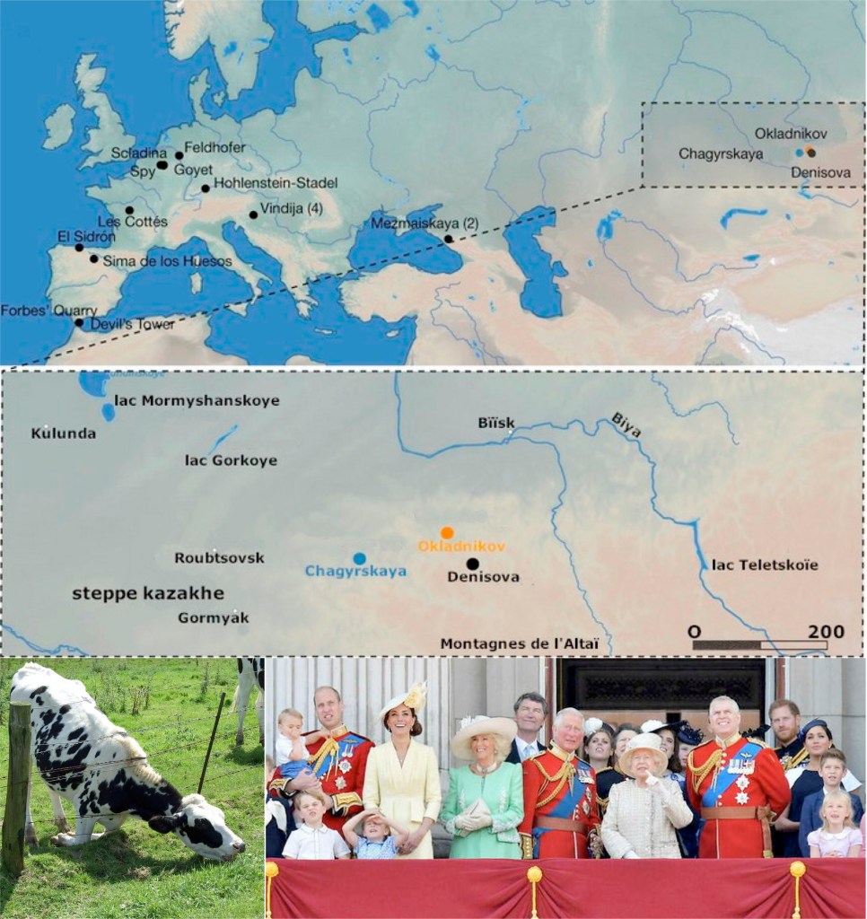 La dernière d’entre elles est d’avoir réussi à tisser le portrait-robot d’un groupe de Neandertal qui a occupé la grotte de Chagyrskaya dans le sud de la Sibérie, toute proche de la désormais célèbre grotte de Denisova (chronique#2.5), il y a plus de 50 000 ans. Le séquençage du génome de 11 individus a permis d’identifier un père et sa fille et d’autres individus mâles apparentés (cousins?), tous issus donc d’une même communauté. En analysant les différences dans leurs génomes – nucléaire, mitochondrial (lignée maternelle), et chromosome Y (lignée paternelle) – les auteurs de cette étude ont pu proposer que ce groupe néandertalien ressemblait beaucoup, d’un point de vue diversité génétique, aux groupes de Gorille des montagnes constitués d’une vingtaine d’individus, et que les femmes provenaient à 60-100% d’autres communautés. Ces données, en accord avec de plus anciennes sur des Neandertal de la grotte d’El Sidron en Espagne, à l’autre extrémité du continent, indiquent donc que les groupes néandertaliens étaient exogames et patrilocaux, c’est à dire, que les hommes de ces communautés se reproduisaient avec des femmes venant de l’extérieur (exogamie) qui rejoignaient le groupe de leur « époux », si cérémonie il y avait, en tout cas du futur père de leurs enfants (patrilocalité). L’exogamie féminine est également retrouvée beaucoup plus tard, à la fin du Néolithique et au début de l’âge du bronze, comme le montre une autre étude récente portant sur plus de 100 génomes anciens isolés de squelettes retrouvés dans des tombes de différents sites du sud de l’Allemagne. Ce qui a frappé les auteurs c’est l’absence de « filles » adultes issues de ces communautés, suggérant leur départ, sans doute à l’adolescence, vers d’autres horizons.